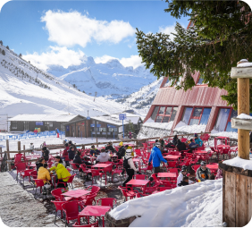 A pie de pistas. Restaurante con terraza panorámica y self service junto al acceso a los remontes.